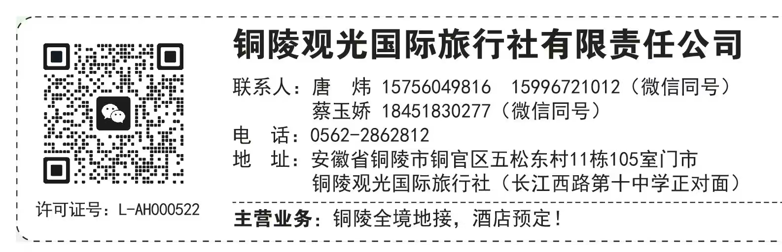 Copyright 安徽銅陵市觀光旅行社有限責任公司 安徽省銅陵市長江西路第十中學正對面銅陵觀光國際旅行社(五松東村11棟105)